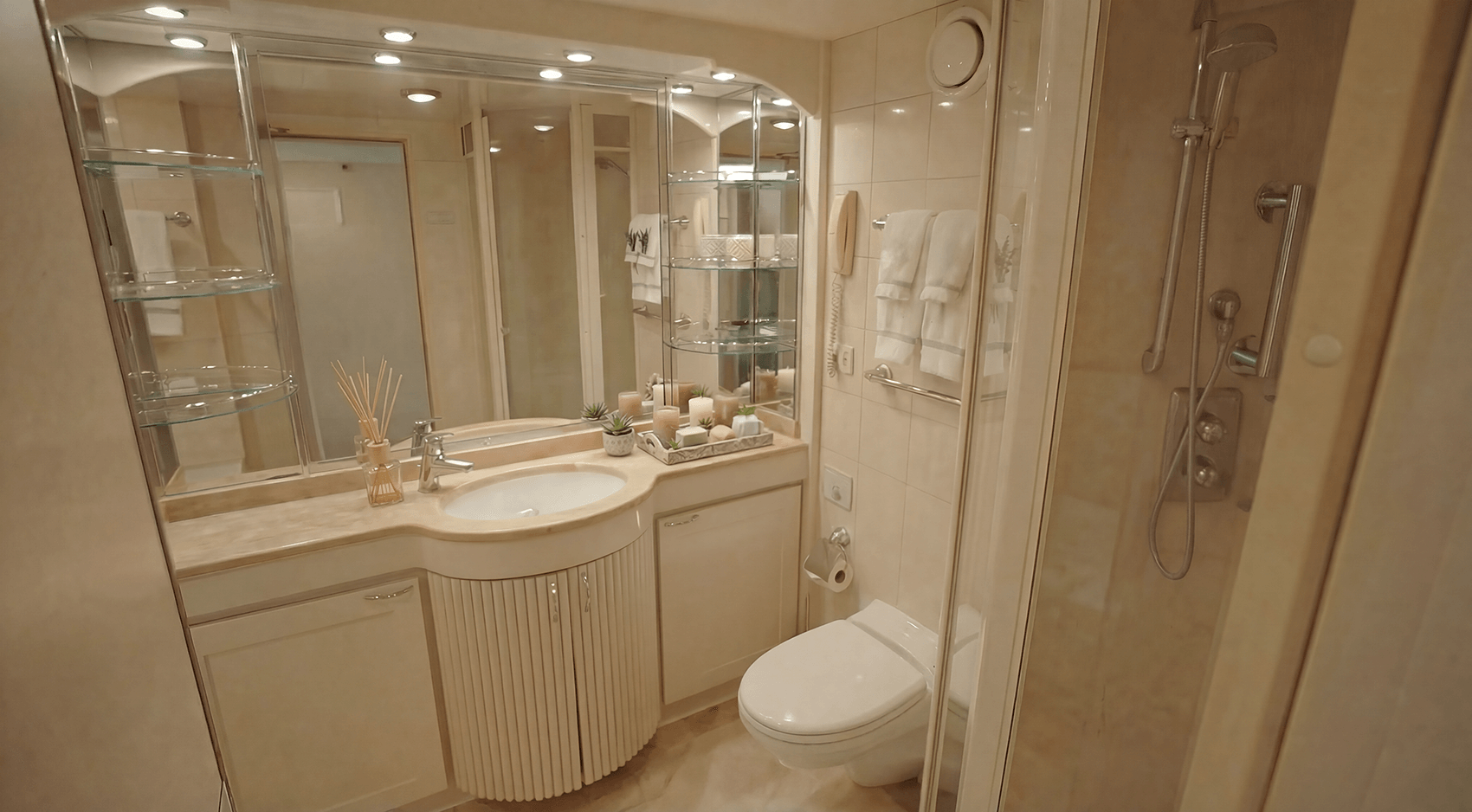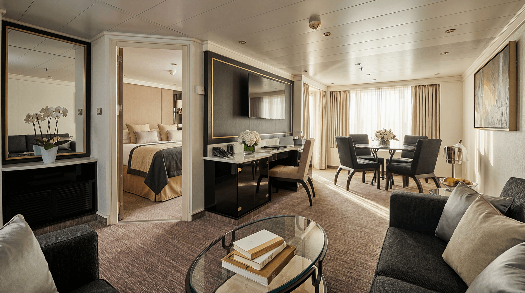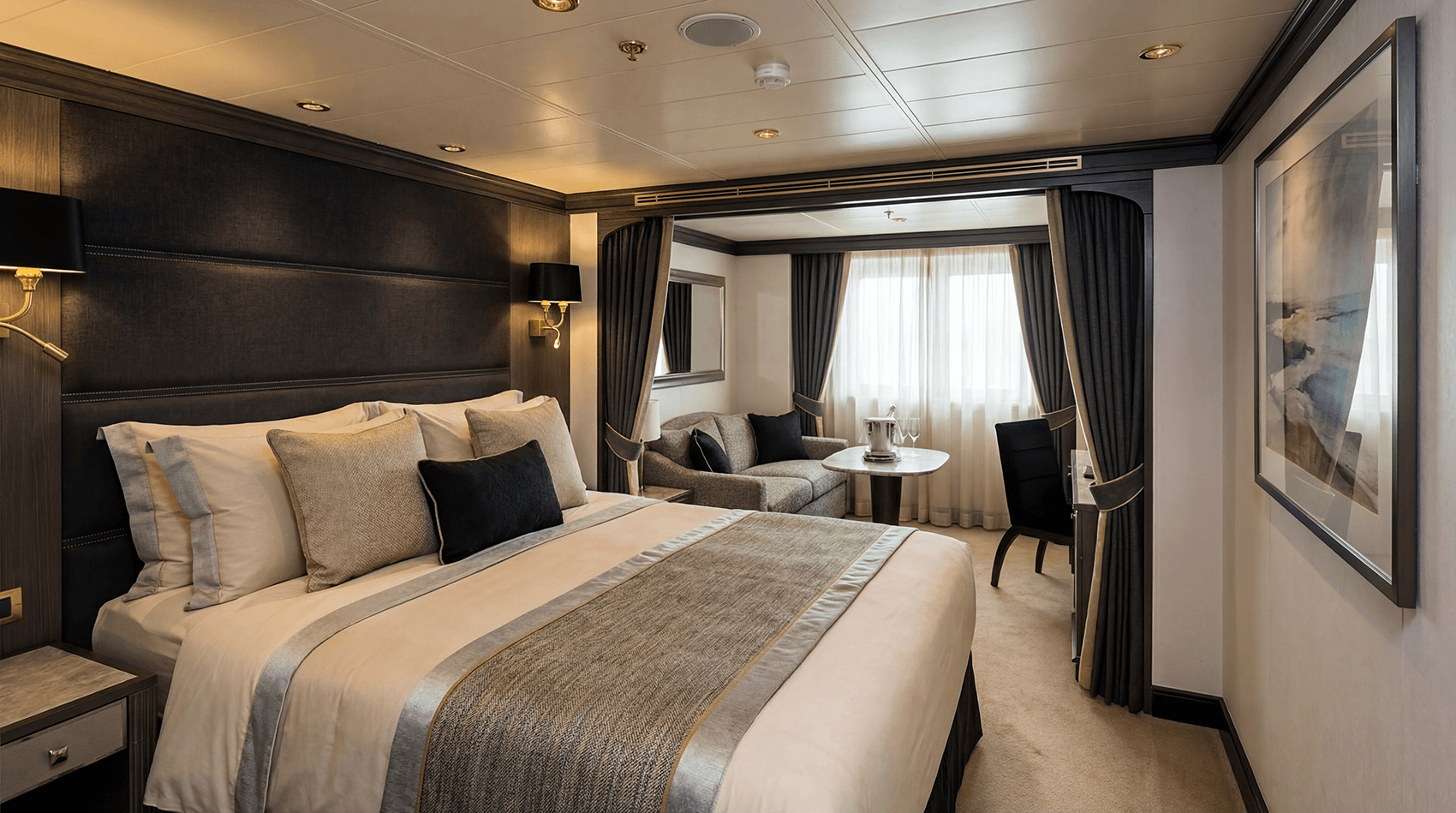 Step into our most luxurious villa–inspired elegance aboard Lumina in this extraordinary Lumina Villa. Rich rosewood furnishings and bespoke fabrics set the tone for refined, residential living at sea. The villa features a serene primary bedroom, one and a half beautifully appointed baths, an expansive living and entertaining area, and two private balconies that invite the ocean in. Thoughtfully designed for both comfort and connection, the Lumina Villa offers a sophisticated setting for hosting guests—or simply enjoying life at sea at its most elevated.