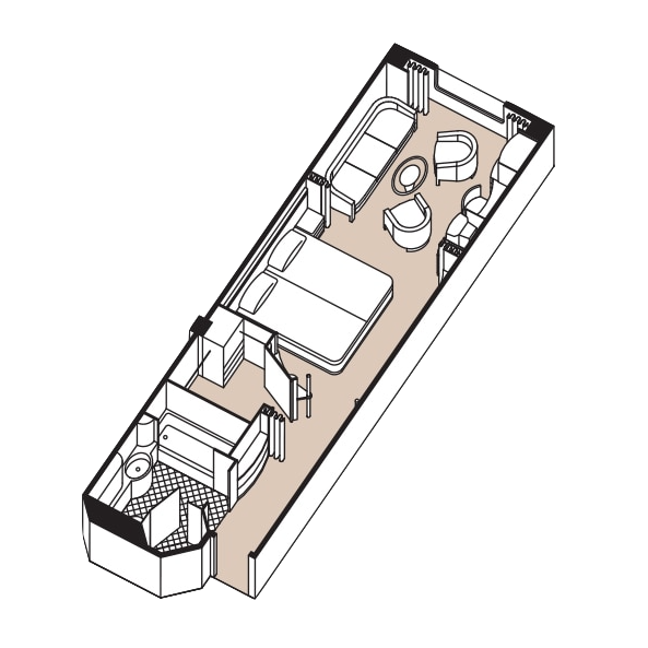 Experience the essence of refined living at sea in our Dawn Suite. This thoughtfully designed studio residence offers luxury essentials in an efficient layout, featuring an expansive oceanview window that bring...